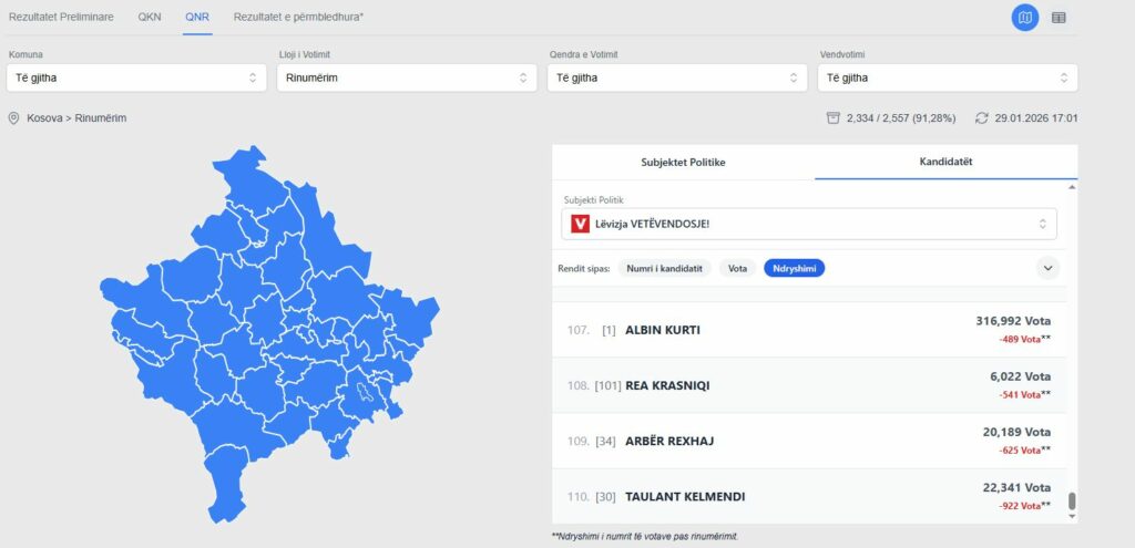 Procesi i rinumërimit ka kaluar 91 përqindëshin në nivel vendi, teksa vota po hiqen e po shtohen te një numër i madh kandidatësh.