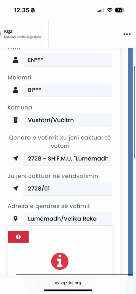 Një lexuese ka raportuar një parregullsi në redaksinë e Klankosova.tv, lidhur me procesin zgjedhor që lidhet me të drejtën e votës dhe vendndodhjen e qendrës së votimit.