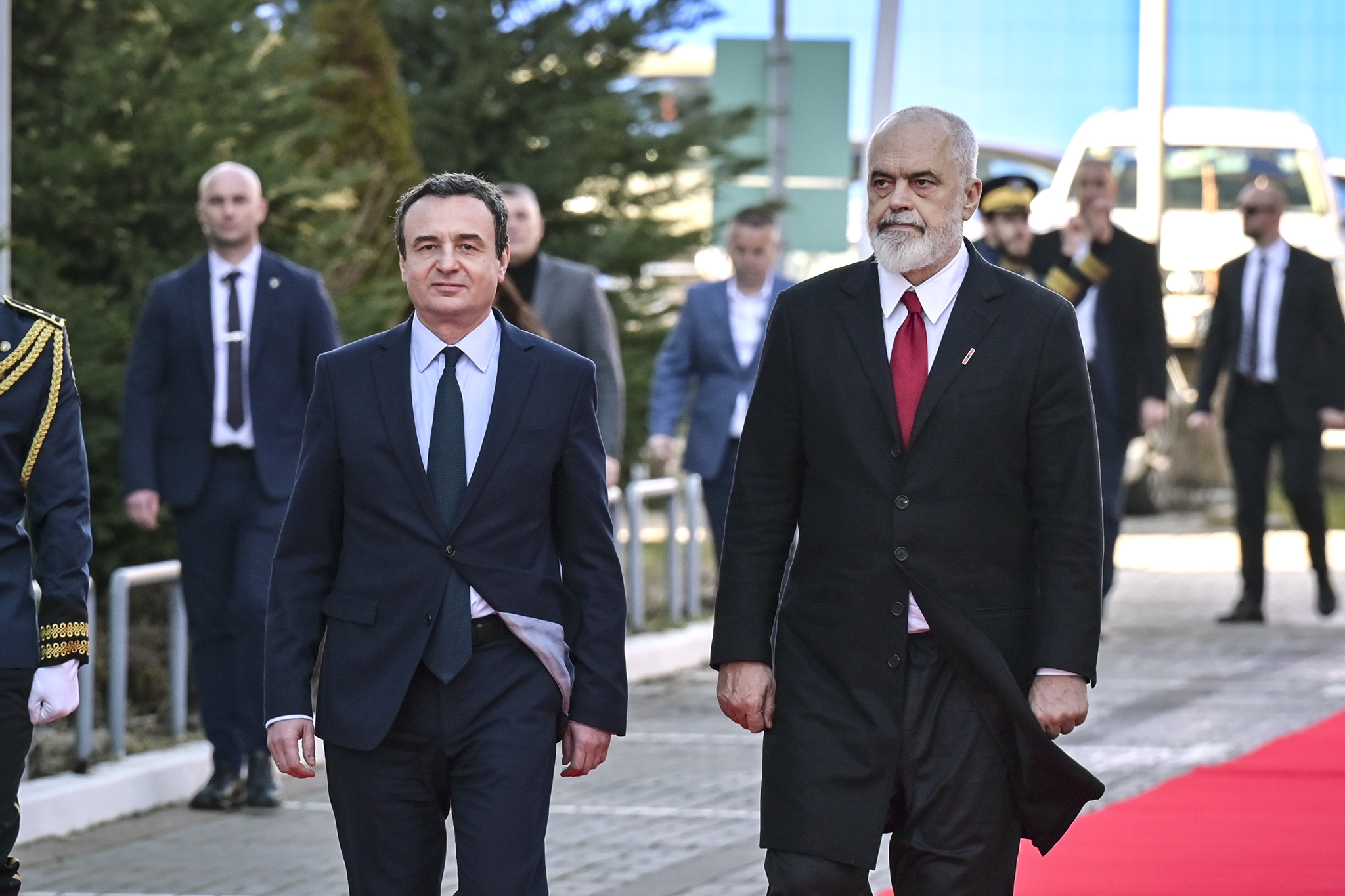 Kryeministri i Kosovës, Albin Kurti, me ceremoni zyrtare, mirëpriti për takim bilateral kryeministrin e Shqipërisë, Edi Rama. Marrëdhëniet ndërshtetërore, marrëveshjet ndërqeveritare, projektet infrastrukturore me interes të përbashkët dhe mundësitë e reja në
