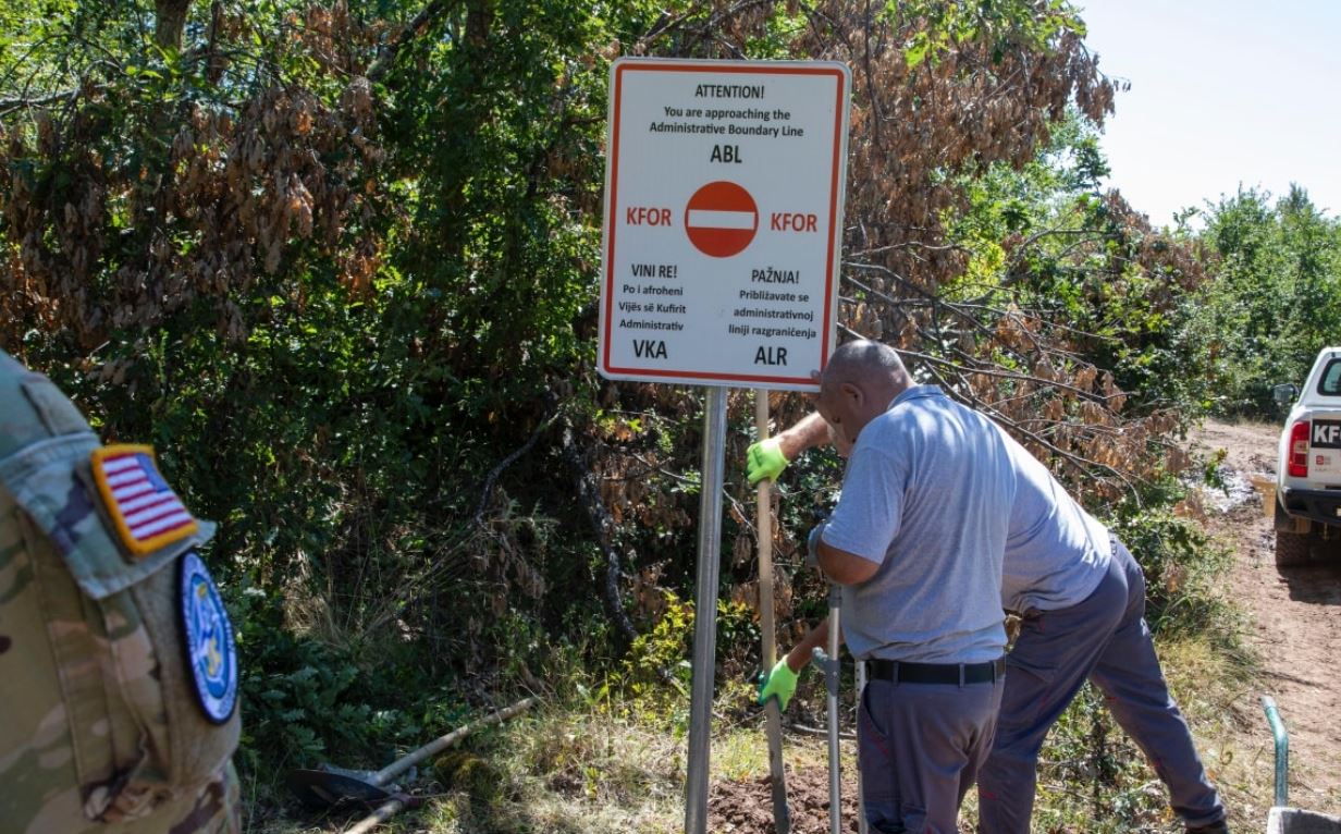 Ushtarët e KFOR-it po vazhdojnë të instalojnë shenja të reja përgjatë kufijve të Kosovës. Sipas njoftimit të misionit të NATO-s në Kosovë, shenjat e tilla paralajmëruese, të vendosura në zonat malore dhe