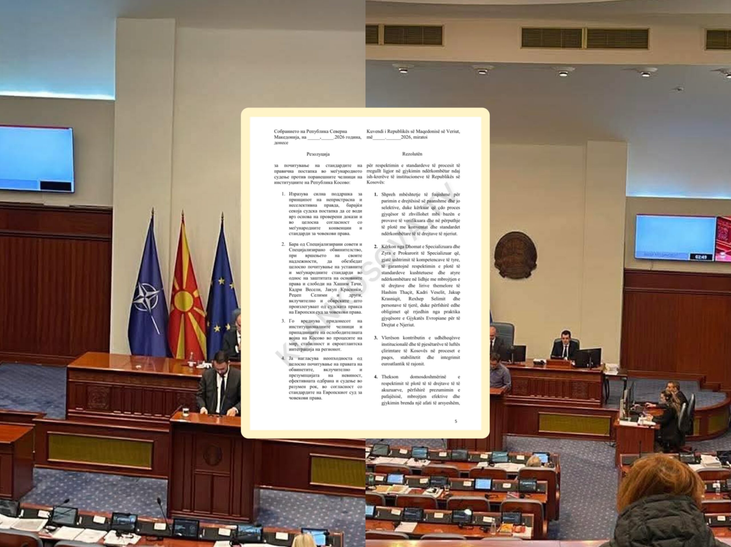 Seanca e Kuvendit të Maqedonisë së Veriut është ndërprerë tek pika e 7-të e rendit të ditës. Në këtë pikë ishte paraparë prezantimi dhe votimi i rezolutës për ish-krerët e UÇK-së që