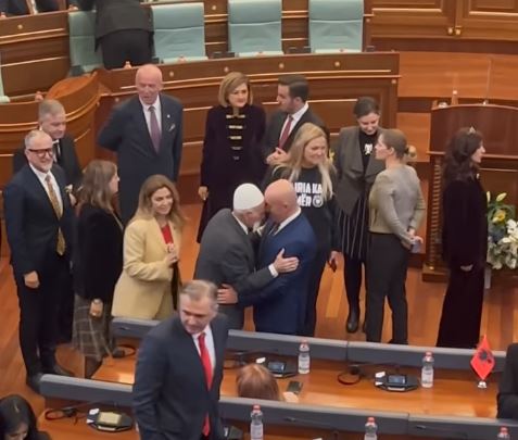 Pak para nisjes së seancës solemne në nder të Pavarësisë së Kosovës, një përshëndetje e ngrohtë ndodhi mes Rifat Jasharit dhe presidentit të Shqipërisë, Bajram Begaj. Në këtë seancë, pos tyre, po