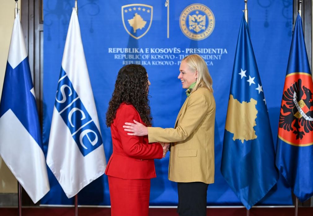 Presidentja Vjosa Osmani, është takuar me Ministren e Punëve të Jashtme të Finlandës, njëkohësisht Kryesuese të OSBE-së, Elina Valtonen. Gjatë takimit, e para e shtetit të Kosovës e falënderoi Finlandën për mbështetjen