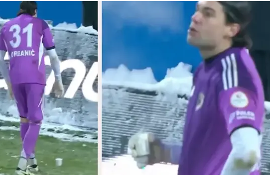 Portieri i Erzurumspor FK, Matija Orbanic, i cili u përball me Çorum FK, gjeti një zgjidhje për të ftohtin -10 gradë duke pirë çaj të nxehtë pas portës. Imazhet që u shfaqën