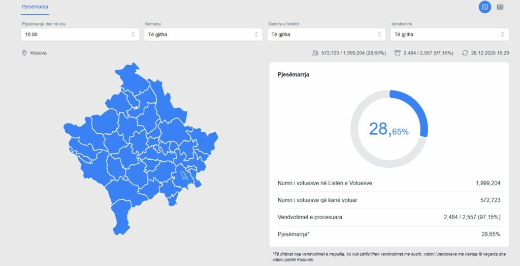 Komisioni Qendror i Zgjedhjeve (KQZ) po vazhdon të përditësojë të dhënat lidhur me pjesëmarrjen e qytetarëve në zgjedhjet e parakohshme nacionale.