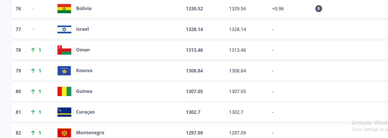 Derisa kombëtarja e Shqipërisë, nuk ka lëvizur nga pozicioni dhe mbetet e 63-ta.