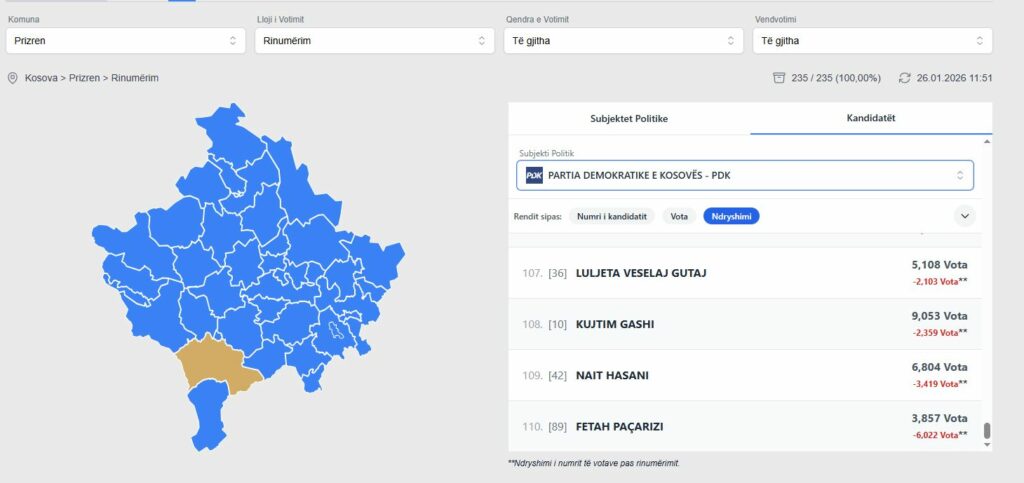 Kandidati që deri më tash ka pasur më së shumti mospërputhje është Fetah Paçarizi i PDK-së, të cilit i janë hequr edhe më shumë vota ndërsa procesi i rinumërimit ka mbërritur në gati 70% në nivel vendi.