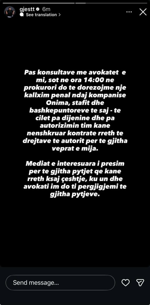 Gjesti ka njoftuar se pas pak do të dorëzojë kallëzim penal ndaj kompanisë “Onima”, stafit dhe bashkëpunëtorëve të saj.