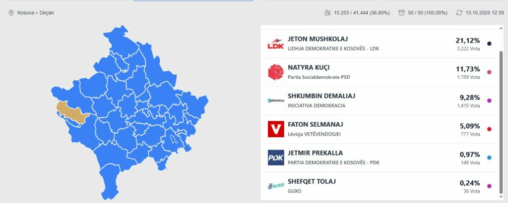 Kandidati i Donika Gërvalles i merr veç 36 vota në Deçan!