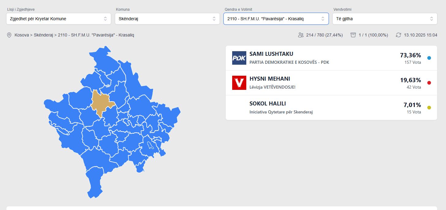 Në Krasliq, ai u votua nga 42 qytetarë, teksa Lushtaku është i pari me 157 vota.
