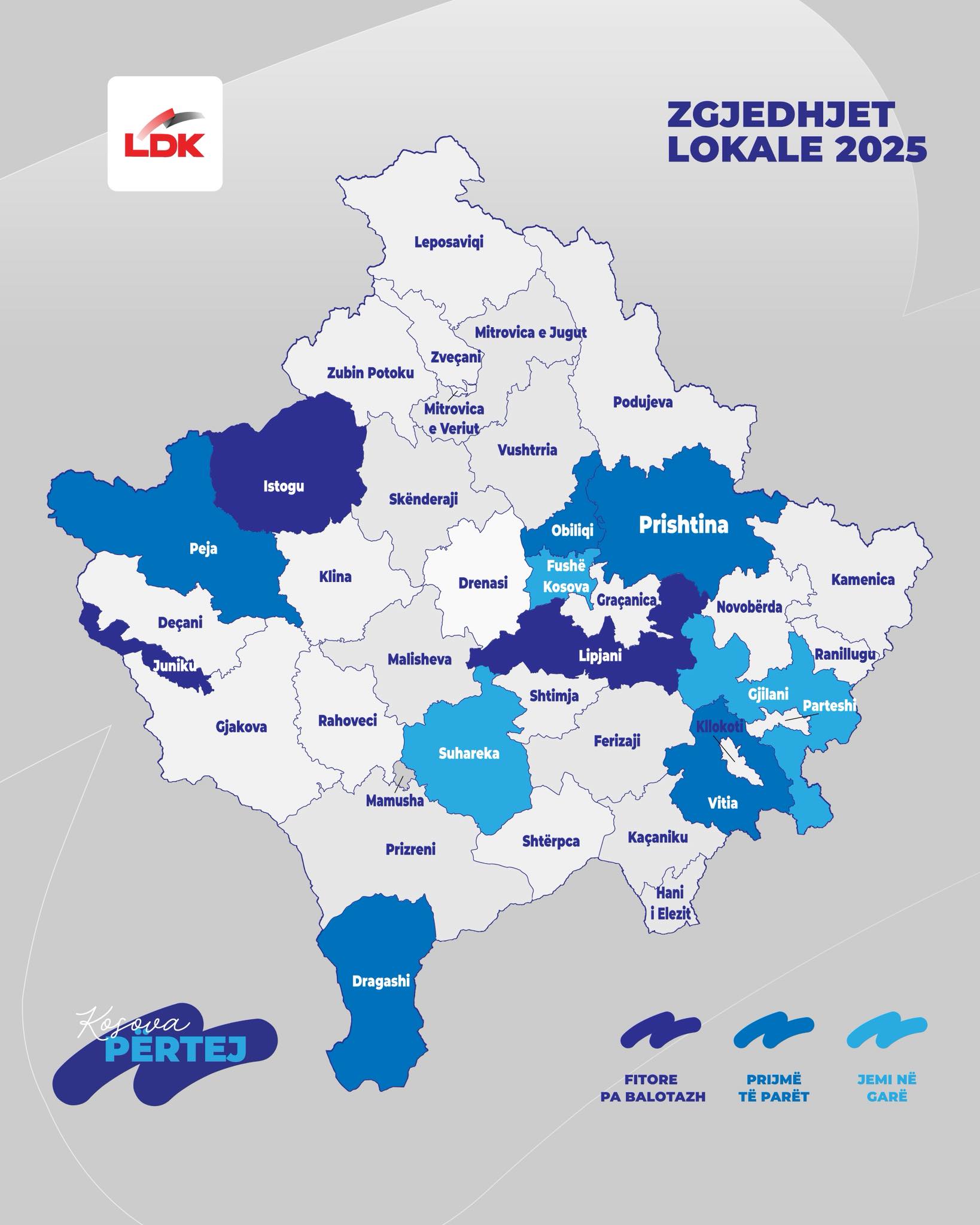 Ndonëse sipas faqes së KQZ-së, figurojnë vetëm Lipjani e Istogu si komuna të fituara pa balotazh, LDK thotë se ka fituar edhe Junikun.