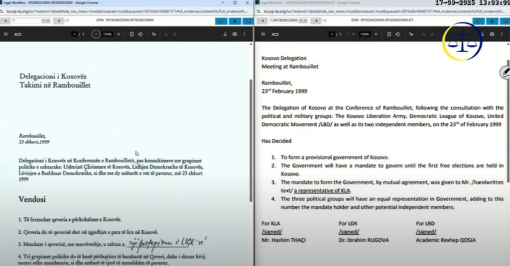 “Ndërkohë që sa i takon Rambujesë, kishte kohezion, kishte një lloj njëtrajtshmërie ndërmjet delegacionit, u desh ca kohë që të ndërtohej kjo njëtrajshmërie, u desht që të kishte një lloj stili, ose një lloj mënyre të unifikuar”.