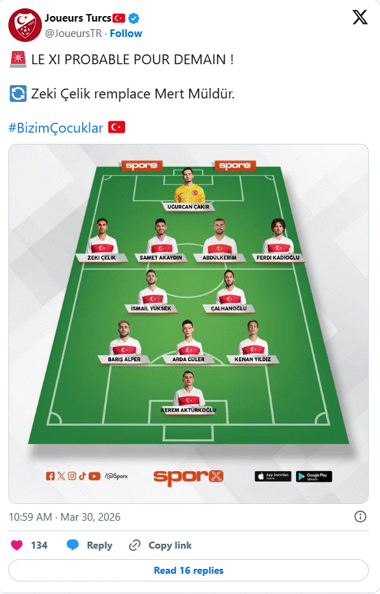 Formacioni i mundshëm i Turqisë do të jetë: Cakir; Kadioglu, Abdulkerim, Akaydin, Çelik; Calhanoglu, Yuksek; Alper, Guler, Yildiz, Akturkoglu.