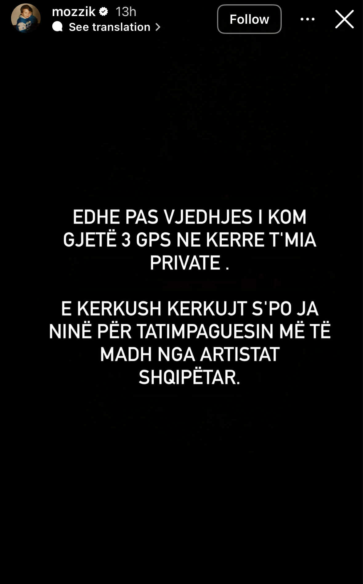 “E kërkush, kërkujt s’po ia ndinë për tatimpaguesin më të madh nga artistët shqiptarë”, përfundoi Mozzik.
