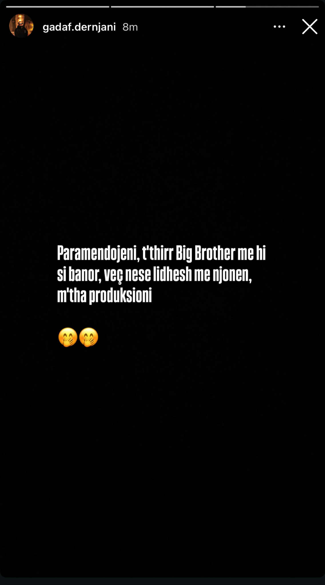 Mirëpo, kësaj radhe, Gadaf Dernjani ka bërë një postim misitik në Instastory, shkruan Demantim News.