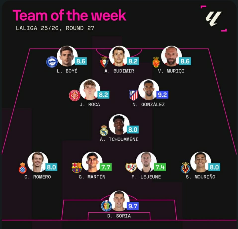 Sulmuesi kosovar, Vedat Muriqi, është përzgjedhur në formacionin më të mirë të javës në La Liga pas paraqitjes së tij të shkëlqyer në fundjavë.