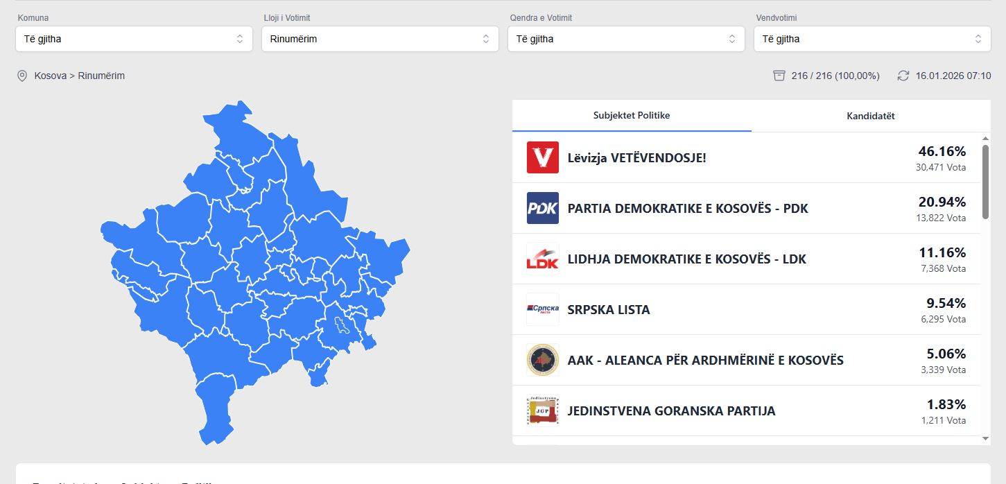Nga fillimi i këtij procesi (e martë, 13 janar 2026, ora 18:00) dhe deri më tani janë rinumëruar 216 nga 914 vendvotime.
