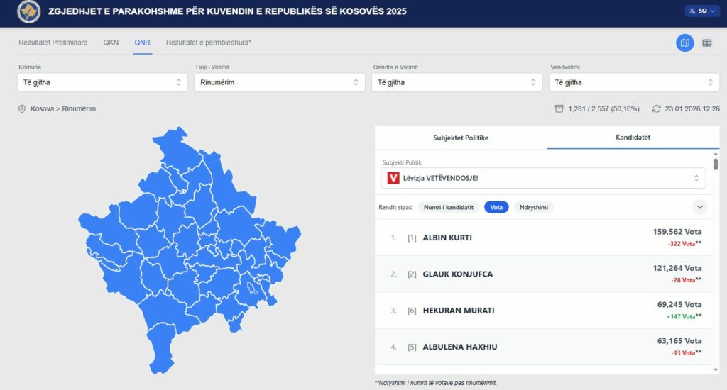 Rinumërohen 50% të votave, në këtë link i gjeni rezultatet