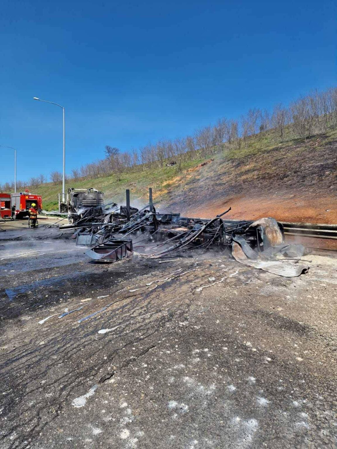 Pas përfshirjes së kamionit nga flakët, rruga në relacionin Suharekë – Duhël është ende e bllokuar, por procesi i pastrimit është në përfundim dhe së shpejti do të lirohet autostrada.