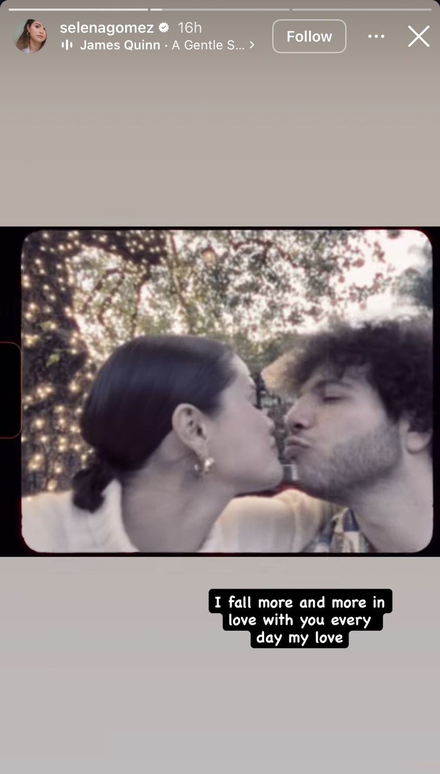 Rezulton se Selena nuk u duk aspak e bezdisur nga sjelljet e tij në podkast. Ajo publikoi në story-n e saj në Instagram një video të ëmbël ku puth bashkëshortin, pikërisht ndërsa ai po bëhej lajm për sjelljen e tij të çuditshme.
