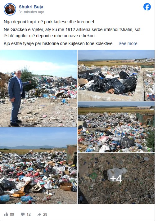 Kandidati i PDK-së për kryetar të Lipjanit, Shukri Buja ka postuar disa fotografi në Grackën e Vjetër të një deponie të mbeturinave.