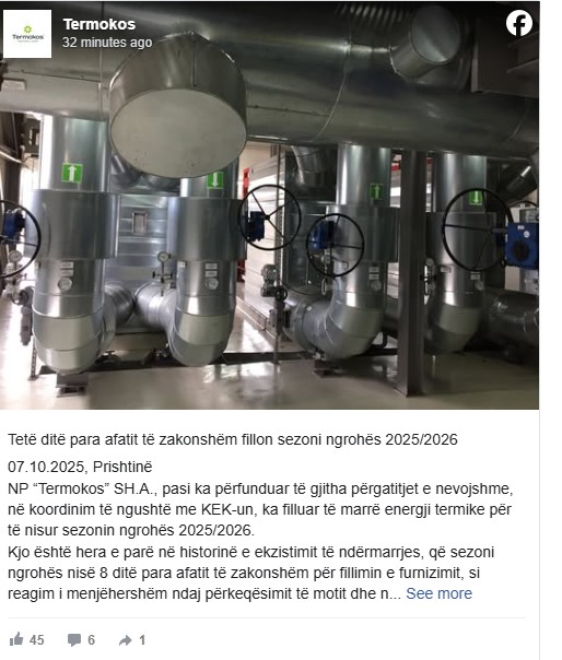 “NP “Termokos” dhe KEK-u po hyjnë në sezonin e 10-të bashkëpunimit të suksesshëm, përmes të cilit po sigurohet një furnizim i qëndrueshëm dhe cilësor për mbi 25 mijë konsumatorë. Duke qenë se sistemi i ngrohjes është shumë kompleks dhe delikat, procesi i fillimit të operimit do të zhvillohet me kujdes të shtuar, duke e ngritur gradualisht kapacitetin e pranimit dhe shpërndarjes së energjisë termike”, thuhet në njoftimin e Termokosit.